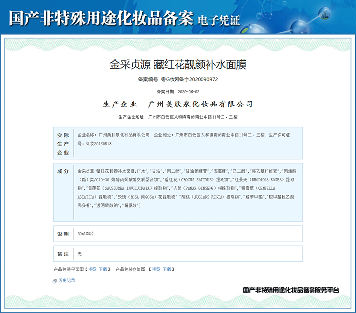 藏紅花靚顏補水面膜備案憑證
